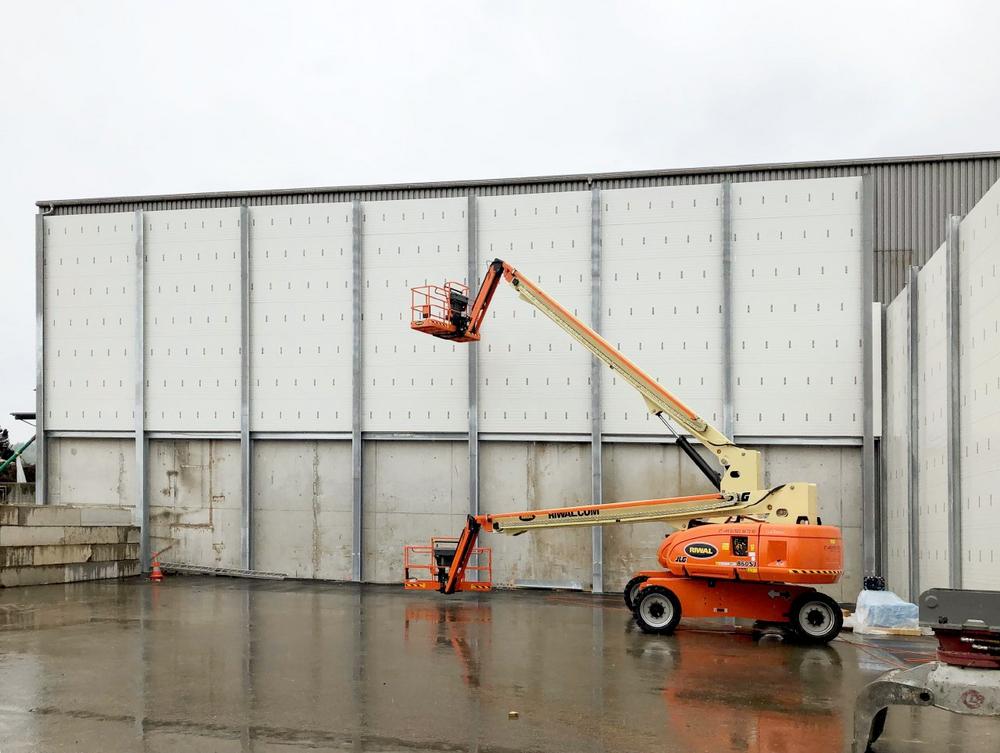 Die Römer AG betreibt in Wohlen im Aargau ein Entsorgungszentrum für Metall- und Papierabfälle sowie Altholz und Kunststoffrecycling. In 2018 wurde mit der Planung einer neuen Sortieranlage sowie einer neuen Halle begonnen, die den Holzlagerplatz überdacht. Aus Brandschutzgründen mussten im Rahmen dieser Baumaßnahme zwei Brandschutzwände erstellt werden, für die eine Feuerwiderstandsdauer von 30 Minuten (R30) gefordert war. Für die Stützen der rund 13 bzw. 9 Meter hohen, in Stahlbauweise konstruierten Brandschutzwände kamen HEB340-Profile zum Einsatz, die feuerverzinkt wurden. Als Ausfachung wurden Brandschutzfassaden-Paneele verwendet. Da an einer der beiden Brandschutzwände Brandschutzmaßnahmen erst ab einer Höhe von ca. 5 Metern erforderlich waren, wurden zum Auflegen der Brandschutzpaneele feuerverzinkte UPE240-Profile als Träger verwendet. Durch die Feuerverzinkung konnte nicht nur ein dauerhafter Korrosionsschutz geschaffen, sondern auch gewährleistet werden, dass die Stahlkonstruktion die geforderte Feuerwiderstandsdauer von 30 Minuten erreicht. Der R30-Nachweis für das Projekt erfolgte mittels Heißbemessung durch Mensinger Stadler Ingenieure. Für die Stahlbau-Planung und -Ausführung war die H. Wetter AG verantwortlich.