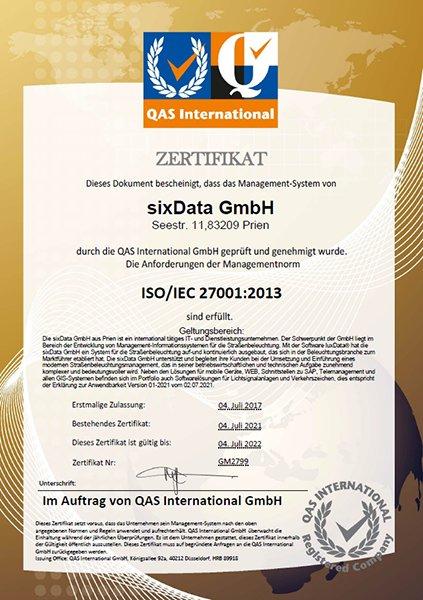 sixData GmbH ist ISO 27001 zertifiziert