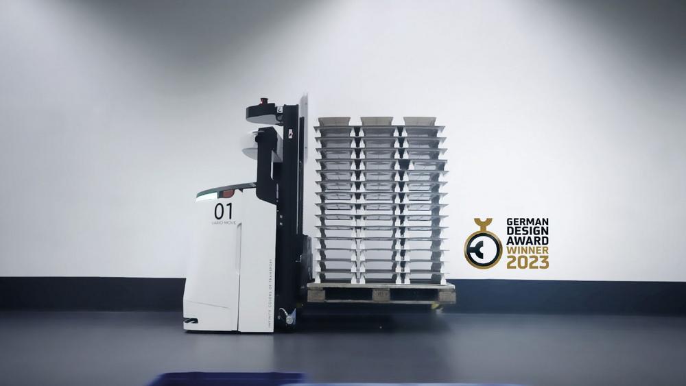 In diesem Jahr überzeugte der VARIO MOVE auch die internationale Jury des Red Dot Design Awards. Freundlich, aber nicht verspielt; robust, aber nicht bedrohlich oder aggressiv –diese selbst gestellten Vorgaben galt es unter anderem zu erfüllen. Je nach Anwendungsprofil kann der VARIO MOVE mit verschiedenen Fahrwerken, unterschiedlichen Lastaufnahmemitteln und allen wesentlichen am Markt erhältlichen Navigationstechniken ausgestattet werden. Der VARIO MOVE Baukasten besteht aus fünf definierten Hubmasten, mit denen eine Übergabehöhe von bis zu 5 Metern erreicht wird.