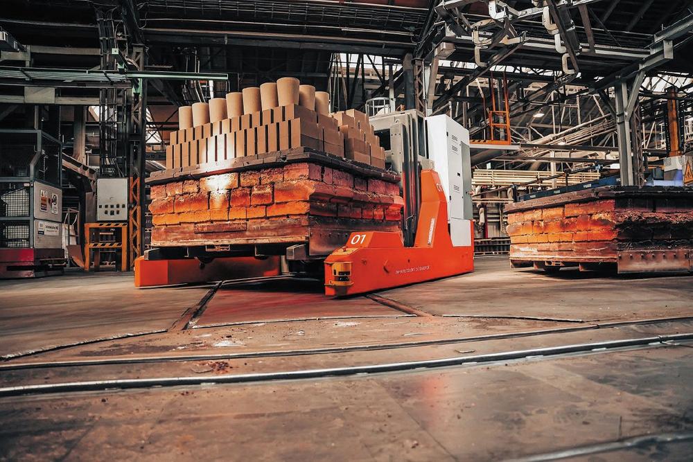 Die internationalen Partner und Kunden von ek robotics erstrecken sich von Ostasien über Europa bis Südamerika und sind durch ihre Branchenzugehörigkeit und Unternehmensgröße ebenso vielfältig wie die einzelnen Transportanforderungen, die es für ek robotics zu bewerkstelligen gilt. Am Produktionsstandort von RHI Magnesita in Radenthein, Österreich, werden in mehreren Verfahren hochwertige Feuerfestprodukte für spezielle Industrieanwendungen hergestellt. Seit 2021 verantwortet ein fahrerloses Transportsystem von ek robotics mit zwölf fahrerlosen Transportfahrzeugen im 24-Stunden-Betrieb kontinuierliche und sichere Transportprozesse in der Produktion und Logistik von Feuerfestmaterialien. Die Transportlösung ist in die gesamte Produktionskette integriert und verknüpft Pressstationen, Öfen, Endverarbeitung, Lager und Versandbereiche miteinander. Die Entscheidung, einen Großteil der Intralogistik zu automatisieren, resultierte aus den vielfältigen Herausforderungen der manuellen Materialtransporte und Rüstwechsel der Produktionsmaschinen mit Staplern. Lange Suchzeiten und vermehrte Produktbeschädigungen aufgrund der hohen Produktvielfalt waren die treibenden Faktoren. Die Komplexität der Anlage und unterschiedlichste Transportanforderungen wurden mit mehreren Simulationsmodellen analysiert, um das optimale Fahrkurslayout und die optimale Fahrzeuganzahl bei maximalen Durchsätzen zu berechnen. Das Full-Service Paket von ek robotics bietet RHI Magnesita individuelle Ersatzteilbevorratung vor Ort, proaktive und korrektive Instandhaltungsmaßnahmen sowie eine 24/7-Hotline für schnelle und individuell abgestimmte Reaktionszeiten bei allen Servicemaßnahmen. Damit ist eine langfristige und hoch verfügbare Nutzung der FTS-Anlage gewährleistet.