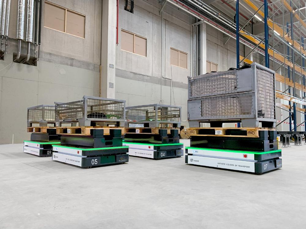Die Transportroboter der X MOVE 1200 Modellreihe sind mit Hubbalken mit einer Traglast von bis zu 1.200 kg für den täglichen Transport von Paletten und Gitterboxen ausgestattet. Auf einem etwa 300 m langen Fahrkurs navigieren sie per Konturnavigation mit Reflektorunterstützung. „Dank ihrer kompakten Bauweise erreichen die X MOVE Fahrzeuge auch auf engstem Raum eine hohe Durchsatzleistung. Die Herausforderung lag darin, eine Anlage zu konzipieren, die bei engen Raumverhältnissen hohe Transportleistungen realisieren kann. Wir haben bereits vor dem Projektstart ein Szenario mit weit über 200 Transporten pro Stunde simuliert. Dies gewährleistet maximale Verfügbarkeit der Anlage für die kommenden Jahrzehnte“, erklärt Ronald Kretschmer, Chief Sales Officer bei ek robotics.
