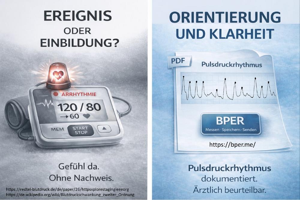 Als Blutdruck-Ereignis-Recorder misst bper den Pulsdruckrhythmus genau in dem Moment, in dem ein Ereignis auftritt. Die Messung wird gespeichert, dokumentiert und als PDF aufbereitet – zeitnah, mobil und strukturiert.