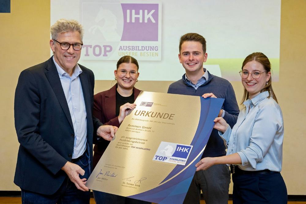 „Eine erfolgreiche Ausbildung ist für uns weit mehr als ein Einstieg in den Beruf – sie ist ein zentraler Baustein unserer langfristigen Personalstrategie. Die erneute Anerkennung durch die IHK Oldenburg zeigt, dass unser Fokus auf Qualität, Nähe zu den Auszubildenden und gezielter Förderung genau der richtige Weg ist.“, Janka Miesch, Leiterin Personalwesen bei Remmers.