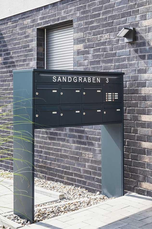 Eine freistehende Briefkastenanlage schafft Planungsspielraum bei Neubau und Modernisierung. Sie kann vor dem Gebäude, entlang von Zufahrten oder auf größeren Grundstücksflächen installiert werden. Die Konstruktion ist auf dauerhafte Nutzung im Außenbereich ausgelegt. Witterungsbeständige Oberflächen und korrosionsresistente Werkstoffe gewährleisten eine zuverlässige Postzustellung bei jedem Wetter.