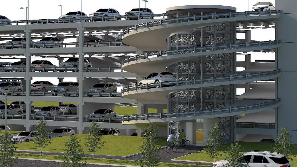 Schon seit 2014 machen sich die Parkraum-Experten aus Baden-Württemberg zudem Gedanken um die Unterbringung von Fahrrädern, und präsentierten damals eine Weltneuheit: ein automatisches Fahrradparkhaus als Turm oder Schachtversion. 2016 wurde der Bikesafe entwickelt – der auf dem Klinikgelände in Calw nun erstmals in ein konventionelles Autoparkhaus integriert wurde.