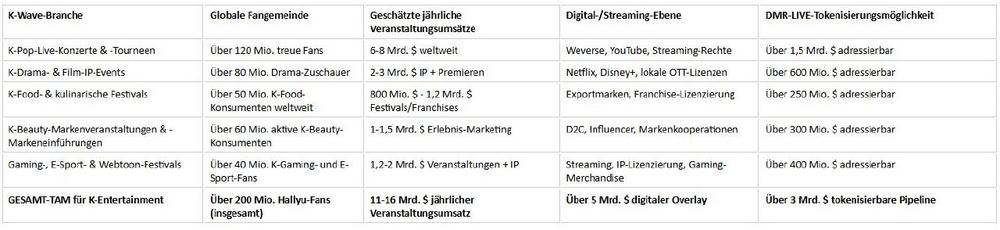 Die Chance von K-Entertainment – über 200 Mio. Fans, 11-16 Mrd. $ jährliche Veranstaltungsumsätze, über 3 Mrd. $ tokenisierbare Pipeline