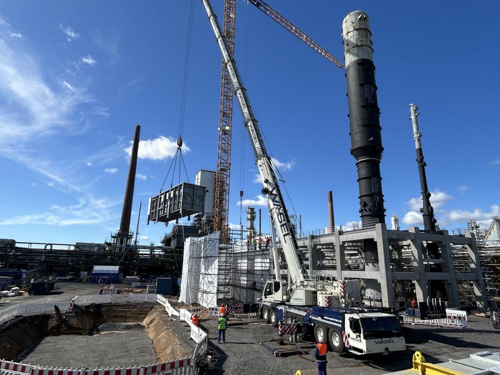 Großer Baufortschritt für die neue Grundöl-Anlage bei Shell Rheinland: Komponenten für elektrischen Prozessofen angeliefert.