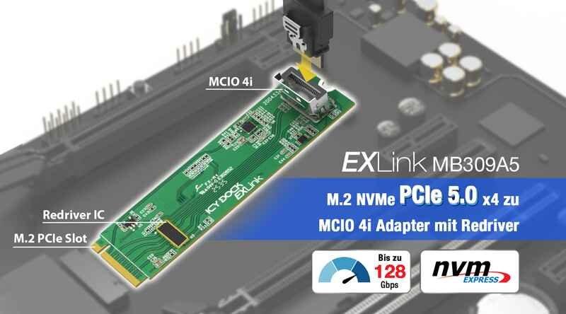 Der ICY DOCK EXLink MB309A5 ist eine leistungsstarke M.2 NVMe zu MCIO-4i PCIe Adapterkarte, die entwickelt wurde, um integrierte M.2 SSD Slots mit professionellen NVMe-Wechselrahmenlösungen zu verbinden. Mit Unterstützung für PCIe Gen5 x4 Bandbreite und Übertragungsgeschwindigkeiten von bis zu 128 Gbps ermöglicht der MB309A5 Systemintegratoren und Workstation-Entwicklern den Aufbau eines […]